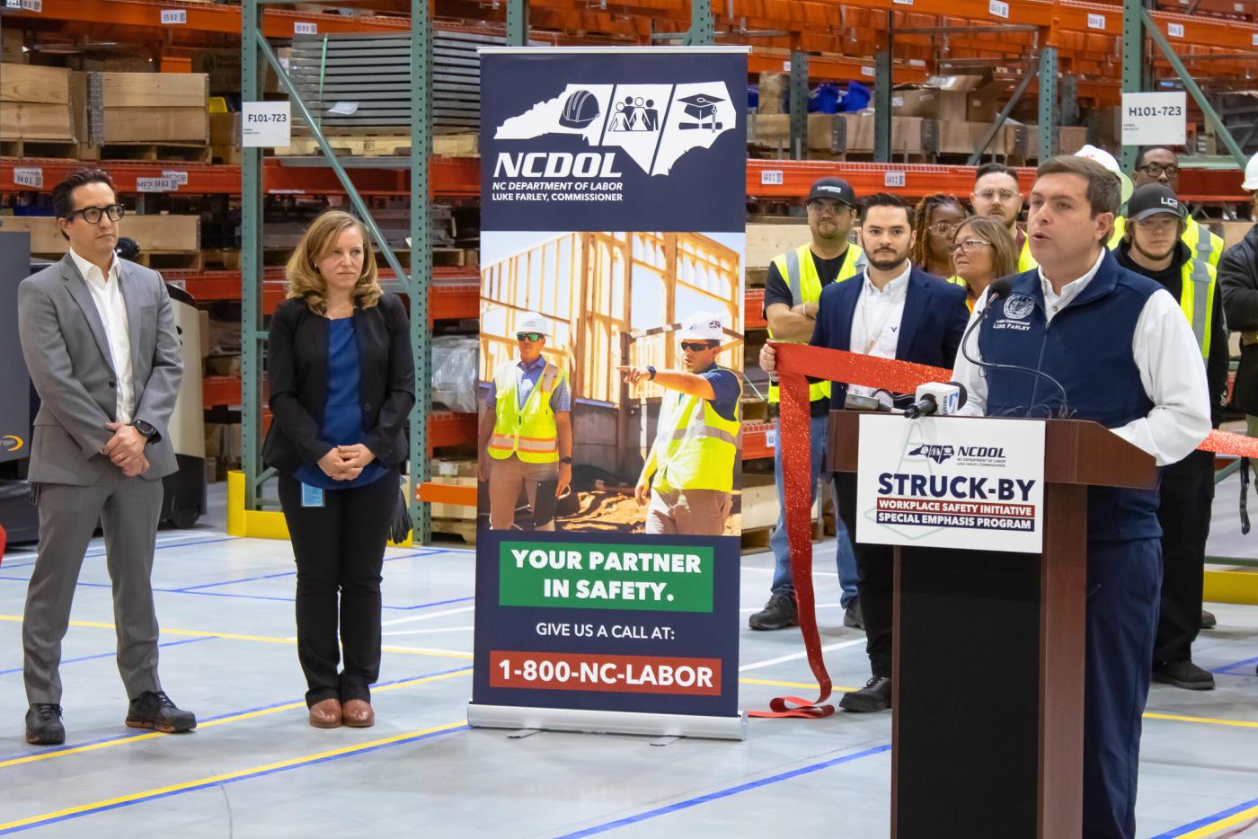 Labor Commissioner Luke Farley announced the implementation of a new workplace safety initiative aimed at reducing struck-by injuries and fatalities in workplaces across North Carolina. The initiative will strategically target struck-by hazards in both general industry and construction.